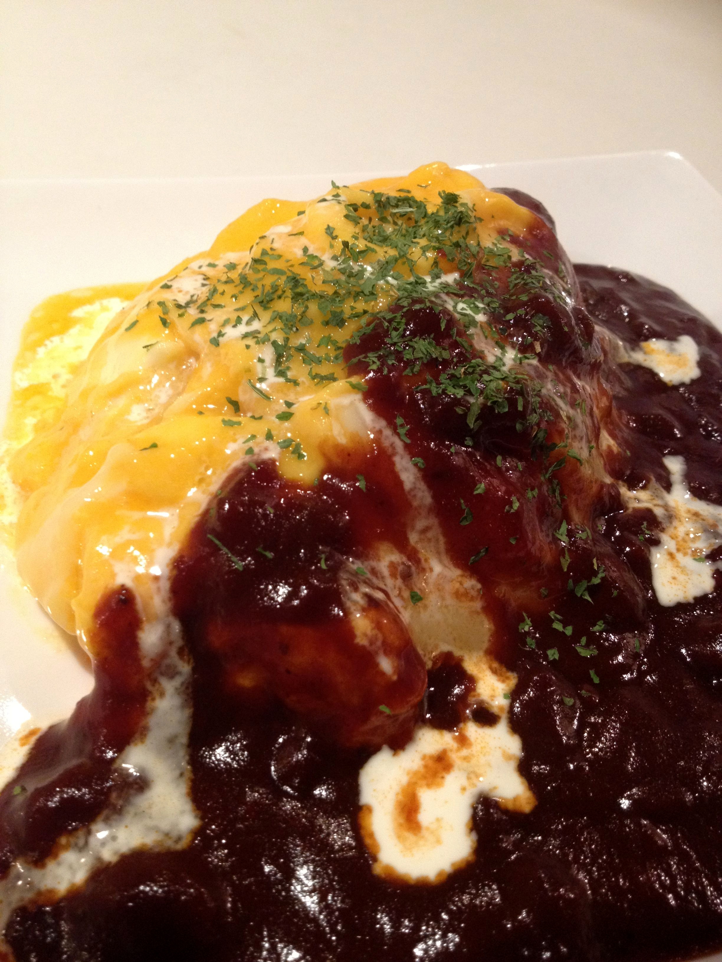 マスター自慢のトロトロ卵に特製デミグラスソース・・・。